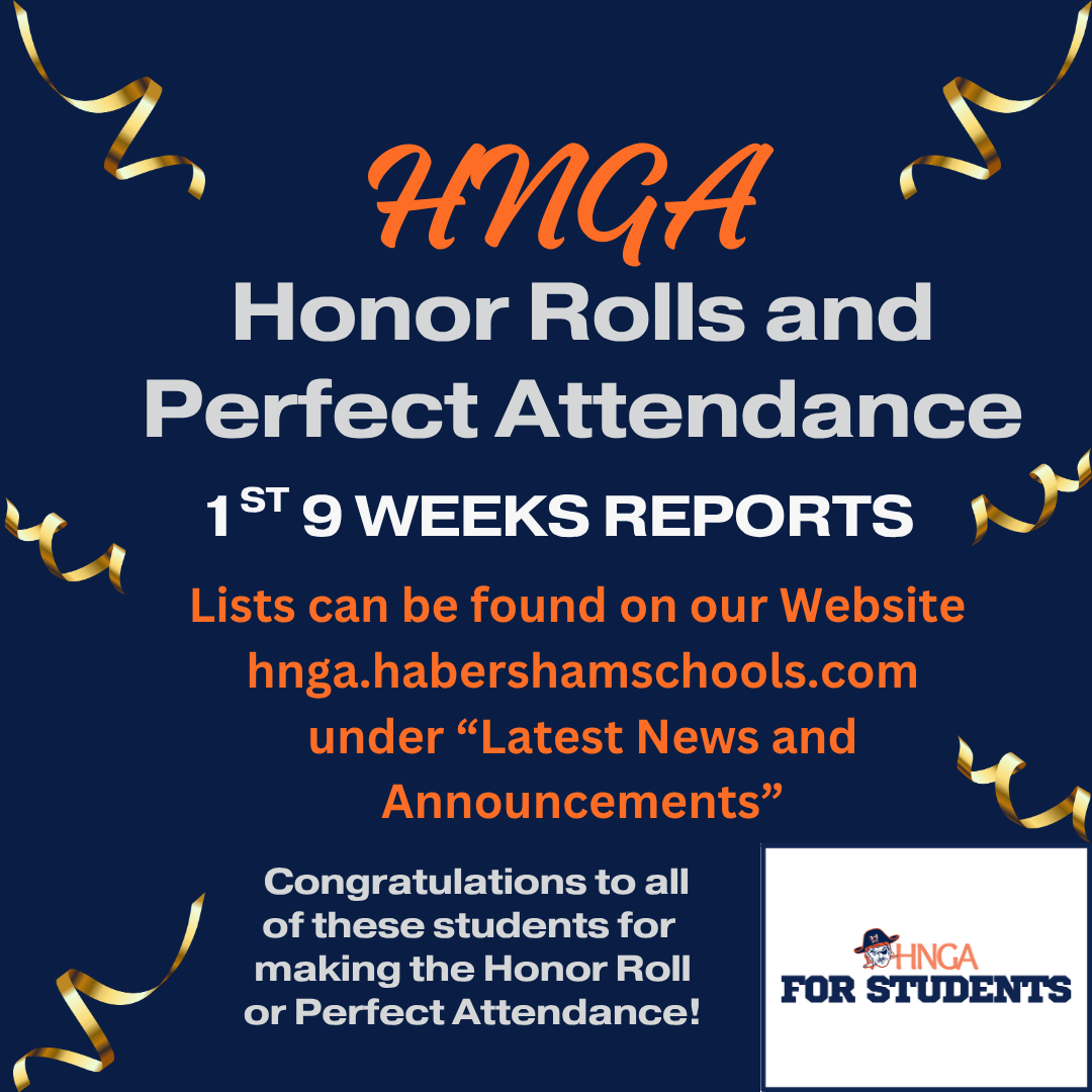 Please open the files below to view our Honor Roll lists and Perfect Attendance for the 1st nine weeks. Congratulations to all of these students!